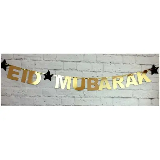 لافتة عيد مبارك ذهبية لامعة بطول مترين ونصف
